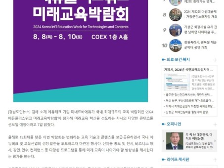 [경남도민뉴스]김해 미네르바에듀, '2024 에듀플러스위크 미래교육박람회' 참가... 미래역량혁신상 수상 예…